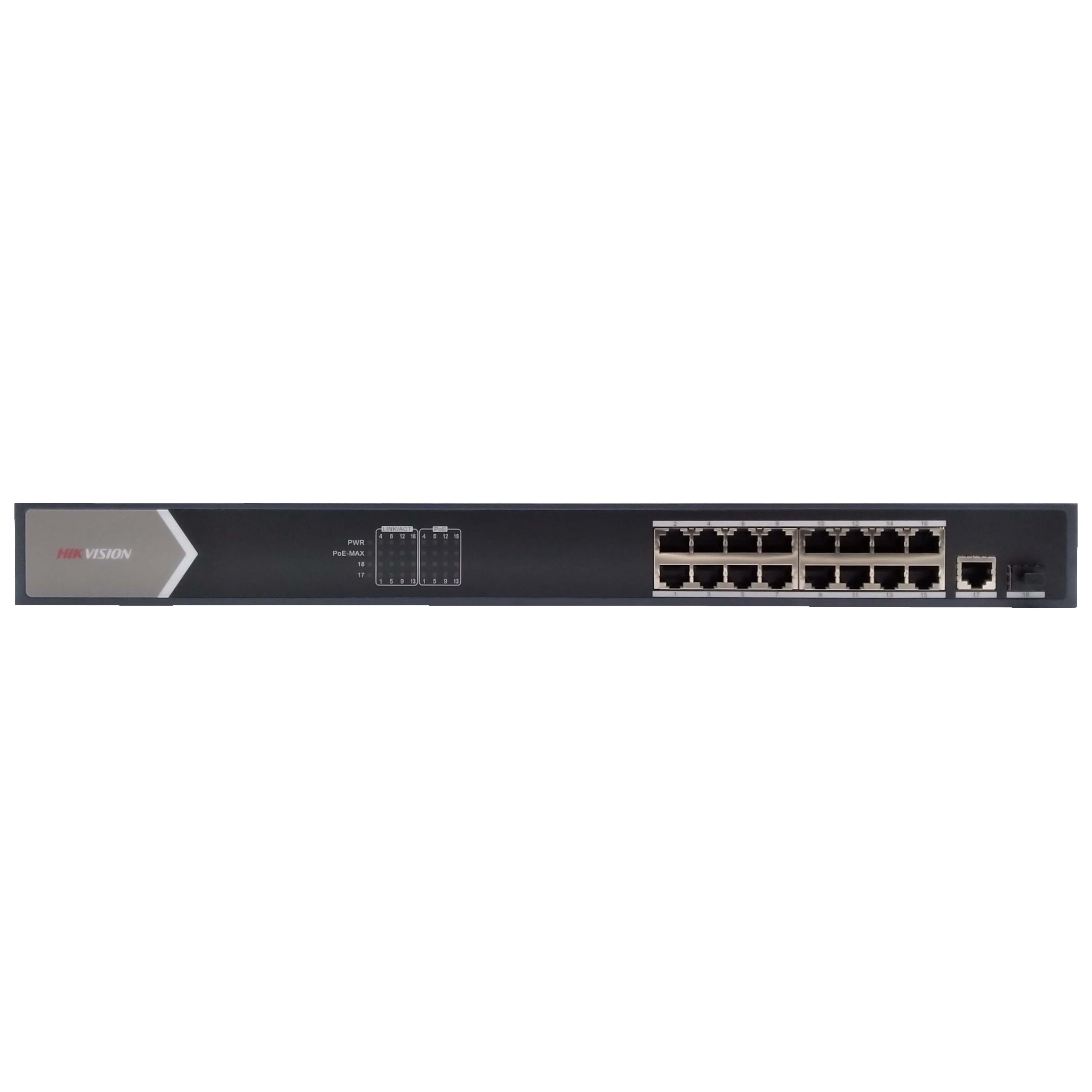 Hikvision DS-3E0518P-E 16 Port PoE Switch, 230W Unmanaged Gigabit (Renewed)